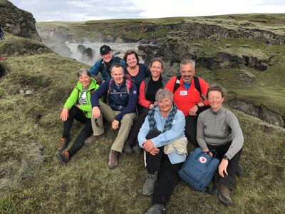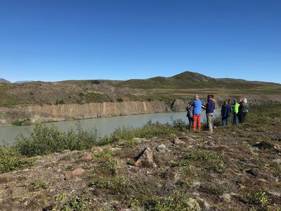 Hópurinn samankominn á bakka Hvítár á öðrum degi ferðar. Mynd: AÞÁ